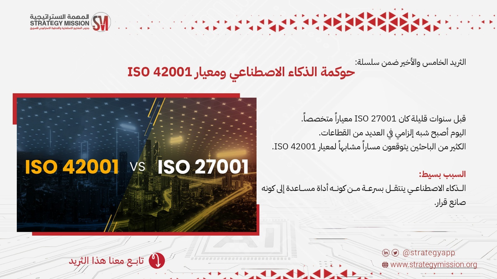المؤسسات التي تستثمر في ISO 42001 حوكمة الذكاء الاصطناعي اليوم ستكون الأكثر جاهزية لمواجهة التحديات وتحقيق النمو المستدام.