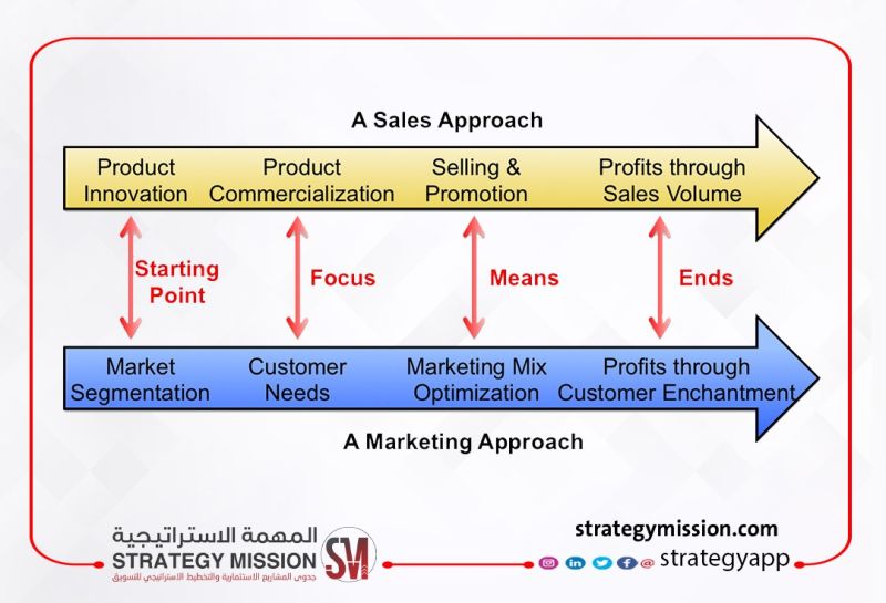 كما أشار Peter Drucker في كتابه Drucker Management ، “ستكون هناك دائمًا حاجة لفريق المبيعات، لكن الهدف من التسويق هو تقليل عدد رجال المبيعات فالهدف من التسويق هو معرفة العميل وفهمه جيدًا بحيث يناسبه المنتج أو الخدمة وتبيع نفسها “.