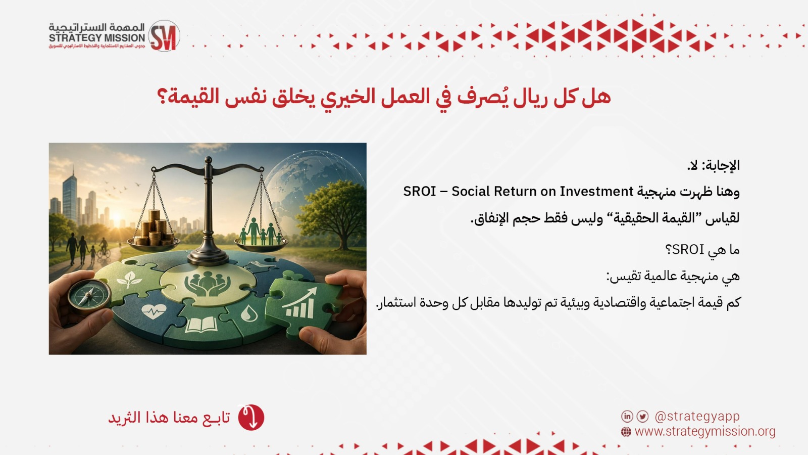 SROI methodology (Social Return on Investment) answers a critical question: does every riyal spent on charity or social programs create the same value? The answer is no.